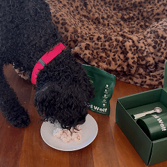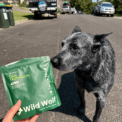 "Meeko has been immobilised for the past 6 months after his hip surgery. We have been mixing in Wild Wolf to his yogurt each day to help his joints strengthen and recover faster. He gained a lot of weight & this helps him slim down."